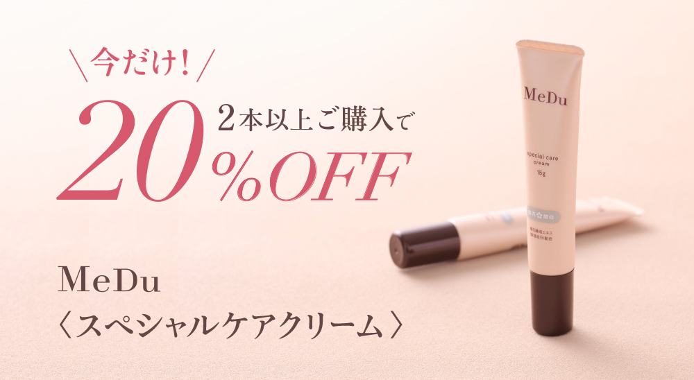 使用頻度によって個人差はありますが、MeDuが推奨している「毎日、朝晩のお手入れ後にプラスするポイントケア」と、「週2~3回のクリームパック」の両方にお使いいただく場合で約1ヶ月半が目安です。クリームパックのみの場合は、約2ヶ月程度お使いいただけます。